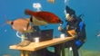 One of the divers mimicked taking notes on an actual computer and the two others carried out a Q&A session, all the while a school of fish swirled around them.