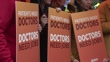 Docto's strike outside of St Thomas' Hospital in London as thousands of doctors in England begin a five-day strike over pay and training posts - the 13th walkout by medics since March 2023 (Footage by AFPTV via Getty Images)