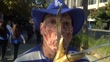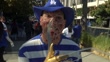 LOS ANGELES, CALIFORNIA - NOVEMBER 1: A Dodgers fan dressed as Freddy Krueger speaks about Dodgers being the Yankees worst nightmare during the Los Angeles Dodgers World Series Parade on November 1, 2024 in Los Angeles, California. (Footage by Lucas Mayer/Getty Images)
