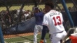 LOS ANGELES, CALIFORNIA - JULY 18: Dodgers outfielder Mookie Betts takes batting practice as Braves outfielder Ronald Acuña Jr. looks on at the 2022 Gatorade All-Star Workout Day at Dodger Stadium on July 18, 2022 in Los Angeles, California. (Footage by Lucas Mayer/Getty Images)