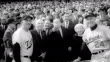 LA Dodgers versus Minnesota Twins in World Series / stadium packed with thousands of fans / Vice President Hubert H Humphrey throws the first ball from the bleachers / Mudcat Grant pitches to Ron Fairly / Don Drysdale hits the ball / Don Muncher gets homerun sets record / Frank Quilici bats / cheering crowds / Zoilo Versalles bats / running and hitting / Earl Battey bats / continue to play as crowd sits and becomes more focused / Twins win the game / announcer presents the game stats / players shaking hands as they walk off the field. LA Dodgers vs Minnesota Twins in 1965 World Series on October 06, 1965 in Bloomington, Minnesota (Footage by Getty Images)