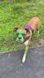 A dog owner in Nottingham, England, was startled on October 1, when her sweet-but-brawny boxer dunked her head into an algae-covered lake and came out resembling the Hulk, the muscular green superhero with an anger-management problem. Hilarious footage by Louise Furlow shows her adorable pooch Cali after the transformation. Furlow told Storyful that Cali had jumped into the lake to fetch her ball, and came out with a tough-looking green face. She uploaded the video to https://www.tiktok.com/@brows_by_louise/video/7285096966441143584 TikTok , where she reassured her followers, saying, "Don't worry, I quickly made her go in clean water to get it all off." (Footage by Louise Furlow/Storyful via Getty Images UGC)