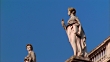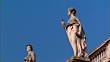 Dolly shot of statues of Roman goddesses standing on top of Grand Theatre de Bordeaux on clear day / Bordeaux, France - HD stock video