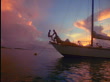 Dolly shot SILHOUETTE couple kissing at bow of sailboat at sunset / The Baths, Virgin Gorda / Virgin Islands - stock video