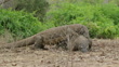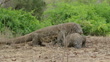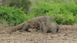 Dominant male Komodo Dragon pinning down another male - 4K stock video