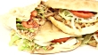 Doner and Durum Kebab, turkish cuisine on white background filmed in full HD with dolly slider