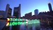 Downtown skyline at Nathan Phillips Square and City Hall in Toronto at twilight