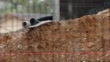 Drainage pipes behind concrete sleeper retaining wall - shallow depth of field - 4K stock video