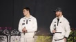 SAN JOSE, CALIFORNIA - FEBRUARY 2: Drake Maye #10 of the New England Patriots and Sam Darnold #14 of the Seattle Seahawks interact and look toward their head coaches while on stage at Super Bowl LX Opening Night at San Jose McEnery Convention Center on February 2, 2026 in San Jose, California. (Footage by Kaelin Mendez/Getty Images)