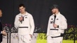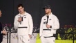 SAN JOSE, CALIFORNIA - FEBRUARY 2: Drake Maye #10 of the New England Patriots speaks on stage about Seattle Seahawks defense and says, "They’re here for a reason," while speaking with Scott Hanson (L) as Sam Darnold (R) #14 of the Seattle Seahawks looks on at Super Bowl LX Opening Night at San Jose McEnery Convention Center on February 2, 2026 in San Jose, California. (Footage by Kaelin Mendez/Getty Images)