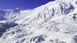 A dramatic mountain wall rises above frozen terrain in the Himalayan wilderness. - 4K stock video