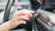Close up asian driver hand adjust volume control on the car radio dashboard