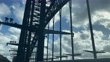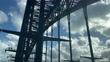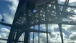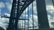 Driving on metal arch bridge, clouds and sunlight, Sydney Harbour Bridge, car point of view - 4K stock video
