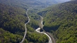 A drone flying downstream along the Posada valley, Prahova county, towards the city of Comarnic.