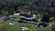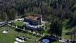 Clockwise flight around the southern and western parts of the Brancoveanu castle in Busteni, Prahova county, Romania.