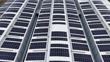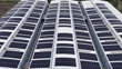 Drone rises then tilts down across solar panels top view, home solar energy system feeds utility connection, grid tied solar system improves energy resilience, sustainable neighborhood investment