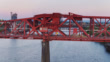 Drone Shot Flying Up and Over Broadway Bridge in Portland Revealing Steel Bridge - 4K stock video