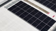Drone sweeps over photovoltaic rooftop array on roof, distributed solar generation feeds grid tied solar system, clean infrastructure enables energy independence home, sustainable city development - 4K stock video
