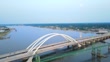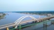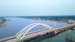 This drone clip features the Iowa-Illinois Memorial Bridge along Interstate 74. The bridge spans the Mississippi River, connecting the cities of Bettendorf, Iowa, and Moline, Illinois. Bettendorf and Moline are part of the Quad Cities metropolitan area.The drone video was recorded around sunset with a full moon visible in the sky.The double-arched bridge replaced two suspension bridges, which opened to traffic in 1935 and 1959. The former bridges were being deconstructed at the time of filming.