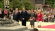 Duke and Duchess of Cambridge Royal Tour of Canada: Official welcome; William and Harper / Kate and Laureen Harper / Various general views of scene at war memorial / William laying wreath at Tomb of the Unknown Soldier as Kate lays bouqet alongside / Kate and William bowing heads then stepping back