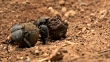 Dung Beetle rolling dung (Sisyphus Schaefferi one of the endangered species) - HD stock video