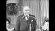 American Federation of Musicians President James C Petrillo gives remarks to the 1953 annual Christmas party for blind musicians in Chicago.