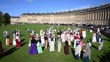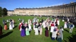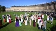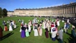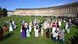 BATH, ENGLAND - SEPTEMBER 13: Early arrivals gather prior to The Grand Regency Costumed Promenade marking the 250th anniversary of the birth of Jane Austen, on September 13, 2025 in Bath, England. The official opening of the Jane Austen Festival starts with the Grand Regency Costumed Promenade through the centre of Bath.ÌýThe annual event sees 2000+ people parade through city where Jane Austen lived, dressed in regency costume with visitors from all over the world heading to Bath to take part in the event which this year marks the 250th anniversary of Jane Austen's birth. (Footage by Finnbarr Webster/Getty Images)