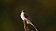 Eastern phoebe perched on a dead broken cedar tree looking around in the southern Piedmont of North Carolina in autumn.