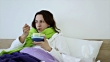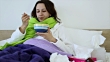 Eating chicken noodle soup in bed while sick - HD stock video