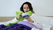 Eating chicken noodle soup in bed while sick - HD stock video