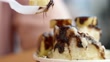 Eating Chocolate banana sliced Bingsu (shaved ice), closed up. - HD stock video