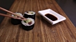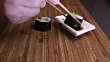 HD1080p: Eating futomaki sushi with omelet (tamale), cucumber and tuna with a little wasabi on top