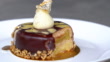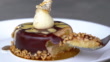 Eating tasty Chocolate caramel fruit cake - 4K stock video