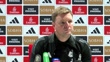 LONDON, ENGLAND - JANUARY 7: Eddie Howe, manager of Newcastle, speaks about Sven Botman after their first leg of Carabao Cup semifinal against Arsenal during a press conference at Emirates Stadium on January 7, 2025 in London, England. (Footage by Niche Sport Media via Getty Images)
