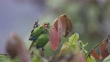 El Oro Parakeets (Pyrrhura orcesi) resting on leaf. El Oro Parakeet was discovered in 1980 and officially described in 1988. It can be found only at the Buenaventura Reserve in Ecudaor, established in 1999.