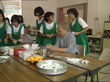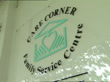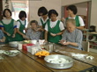 Singapore lifestyle: Elderly Care / Shopping; SINGAPORE:EXTSign TILT UP 'Toa Payoh' 'Care Corner Family Service Centre' INT'Singapore Family values' poster / Elderly women preparing food at table with younger helpers / VCare workers along / Elderly people eating as sitting in row