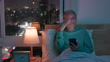 Elderly man scroll smartphone dark uncomfortable on bed - 4K stock video