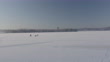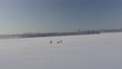 Electric bike pulling sledge and cross country skier across frozen lake Lyseren in Norway - 4K stock video