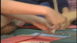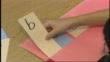 Elementary school children arrange letters to practice spelling.