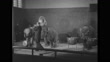 Title card: "Elephant Trio Wows Berlin - To Tommy Dorsey's 'Boogie Woogie'" / trainer puts peanut into elephants mouth / VS he points at large keys on piano and elephant hits them with its trunk / VS elephant steps on pedal to swing drum sticks over drums / VS another elephant plays sousaphone wrapped around his head / VS elephant steps on pedal to hit cymbals / VS trainer plays tiny trombone with elephants stomping on pedals and blowing through sousaphone