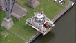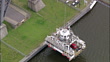 AERIAL WS Elevator carrying cars and peoples / Kiel Canal, Schleswig-Holstein, Germany - HD stock video