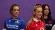 LONDON, ENGLAND - MARCH 13: (SLOW-MO) (L-R) Elisa Giordano, Italy captain, Hannah Jones, Wales captain, Manae Feleu, France captain, Marlie Packer, England captain, Rachel Malcolm, Scotland captain and Edel McMahon, Ireland captain pose with the Six Nations trophy during Guinness Women's Six Nations Launch 2024 at held Frameless on March 13, 2024 in London, England. (Footage by Richard Heathcote/Getty Images)
