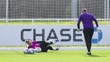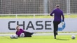 BURTON-UPON-TRENT, ENGLAND - FEBRUARY 24: Ellie Roebuck of England warms up during a training session at St Georges Park on February 24, 2026 in Burton-upon-Trent, England. (Footage by Matt McNulty/Getty Images)