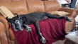 Ellie the Great Dane looks like she is smiling while enjoying her sweet dreams. Watch & laugh as dreaming Ellie runs in her sleep, while comfy on the sofa. Ellie does her best exercising while sleeping. Ellie is so pretty with her white frosting inside her ears, on her beautiful face & on her toes.