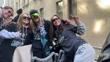 NEW YORK, NEW YORK - NOVEMBER 24: (EDITORS NOTE: audio/music licensing is not included.) Emily Sonnet #6, Ryan Campbell #12 and Lilly Reale #4 of NJ/NY Gotham FC celebrate during the NWSL 2025 Champions Parade at City Hall Park on November 24, 2025 in New York City. (Footage by Sarah Stier/NWSL via Getty Images)
