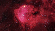 This nebula, sometimes known as the Keyhole nebula, is a part of the larger Eta Carina nebula. It lies in the Carina constellation, and is only visible from the Southern hemisphere. Emission nebulae are clouds of gas and dust that are ionised by radiation from hot stars within them, causing them to glow. An open star cluster is visible at lower left