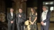 Emma Raducanu, accompanied by (right to left) Michael Ward, Managing Director of Harrods, Pietro Beccari, Chairman & CEO of Christian Dior, and (unknown), hits the power on the Dior winter presentation at Harrods Department Store. Not everything goes to plan, with some technical issues.