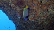 Emperor angelfish (Pomacanthus imperator) swimming by a rock wall. Filmed on the Great Barrier Reef, off the coast of Queensland, Australia.