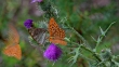 Emperor coat, Argynnis paphia and Pellucid Hoverfly, Volucella pellucens, in forest - 4K stock video