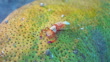 Emperor shrimp on sea cucumber (Periclimenes imperator on Holothuria fuscopunctata) on sandy substrate